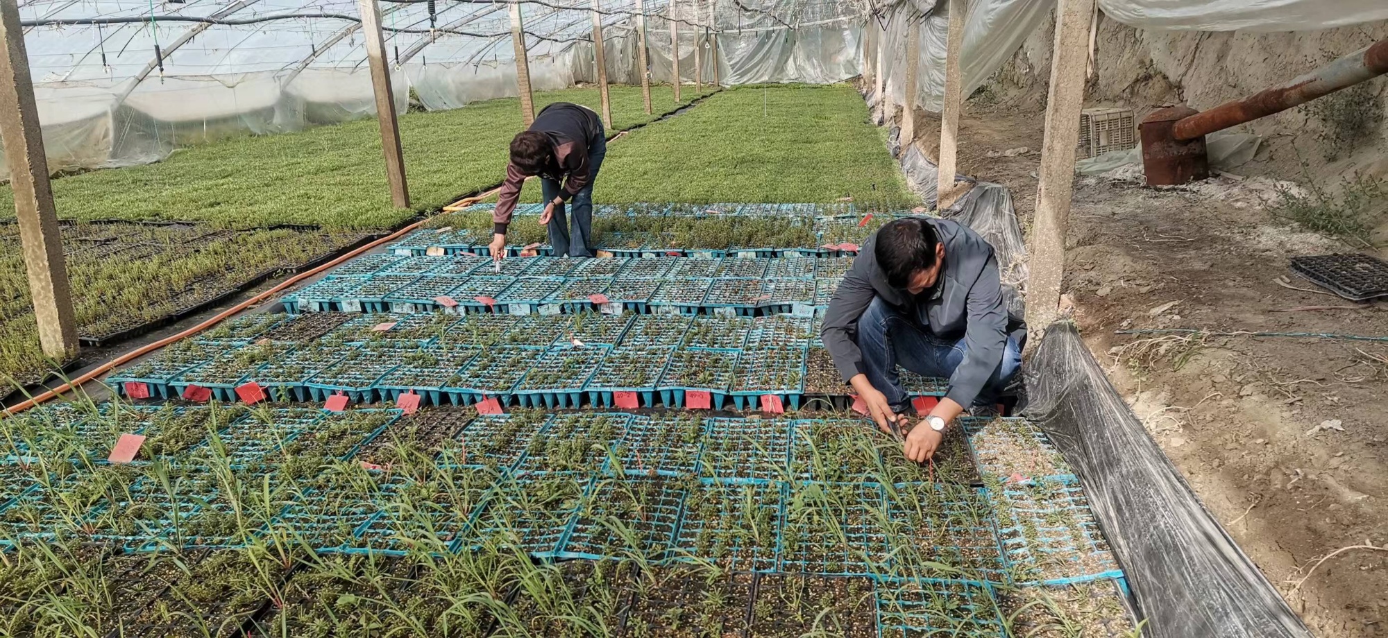 为办理眼前罗布麻精良种类匮乏,选育适合罗布麻资产药用、茶用和纺织的种类,尉犁县携带携带县林业局技艺专家一行跑遍天山南北,采集罗布麻种质资源,数目达100余个。技艺职员从温室大棚育苗,到小苗发展,每一阶段都用心呵护。今朝,一盘盘青葱的罗布麻苗正源源连接地运往各个种植点。